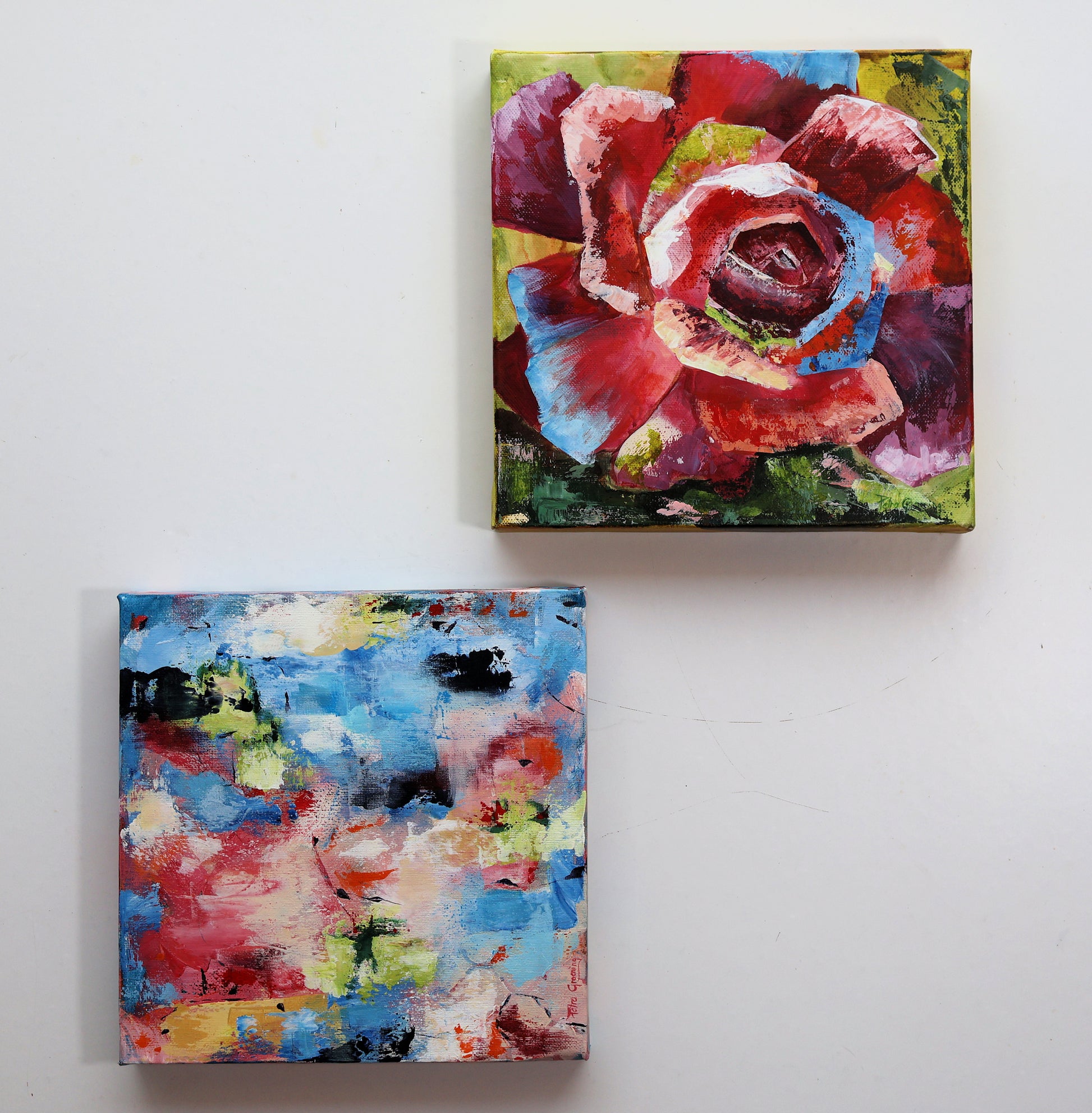 Ready to hang acrylics painting each 25cm x 25cm thick Gallery-wrapped canvas stretched on wood.